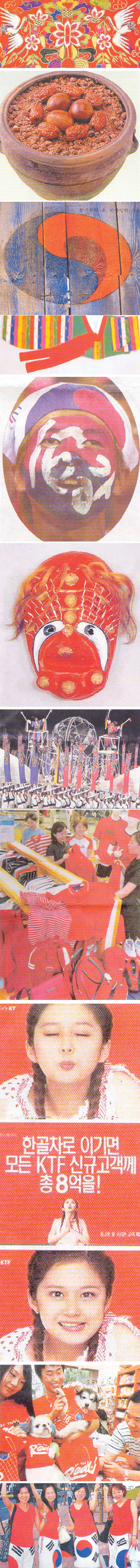 ⑪ 신성불가침의 영역 중 하나로 여겨왔던 태극기가 일상생활에 들어와 응원용 치마, 망토, 두건 같은 것으로 사용했다.