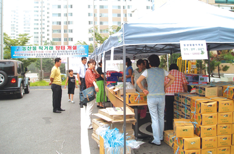 지난달 30일 풍덕천2동 주민자치위원회는 동사무소앞 주차장에서 농산물직거래 장터를 개설 주민들로부터 큰 호응을 얻었다. 이날 장터에서는 모현면 일산작목반과 자매결연을 맺고 그곳에서 생산된 상추, 케일 등 엽채류와, 열무, 얼갈이, 토마토, 그리고 용인백옥쌀 등을 거래했다.