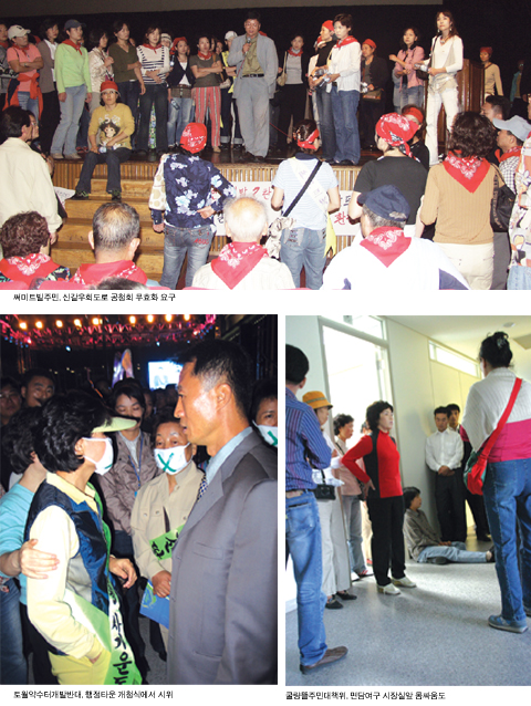 또한 관리청 담당자를 빼내려는 경찰과의 대치에서 써미트빌 부녀회장 김연희 씨가 부상을 입어 강남병원으로 후송됐다.
