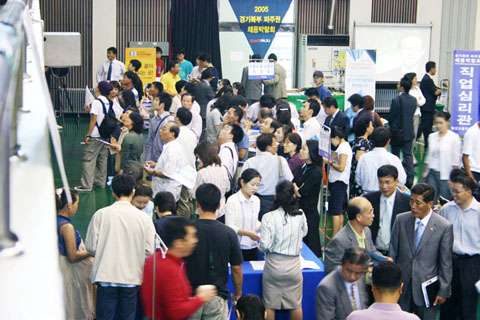지난달 27일 오후 2시부터 5시까지 파주시 시민회관에서 개최된 채용박람회. 구인구직을 위한 사람들의 발길이 분주하다.