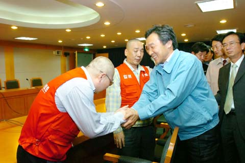 손학규 경기도지사는 지난 5일 도청 정문에서 무자격 안마행위 척결 등을 내세우며 시위를 벌이고 있는 대한안마사 협회 경기도지부(지부장 송근수) 관계자들을 직접 면담하고 문제해결을 위해 적극 노력하겠다고 밝혔다.