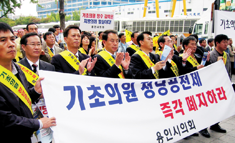 용인시의회 이우현 의장을 비롯한 의원16명은 지난 3일 정례회의를 열고 공직선거법 재개정촉구를 위한 전국 시·도 대표의장단의 사직 결의에 따라 전국 시·군·자치구의회 중 처음으로 집단 사직서를 제출했다.