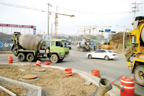 동백지구 건설현장을 관통하는 시도 5호선을 이용하는 운전자들은 뿌연 먼지와 건설 현장에서 언제 튀어 나올지 모르는 레미컨, 덤프트럭, 공사 편의를 위해 쉴새없이 바뀌는 노선으로 매일 곡예운전을 하고 있다.