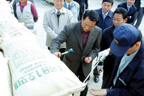 이정문 용인시장은 지난 10일 백암면 장평창고에서 열리는 2005년산 공공비축미곡 건조벼 매입현장을 방문해 농업인과 수매업무 종사 직원을 격려했다.