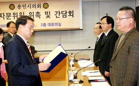 용인시의회(의장 이우현)는 지난 9일 의회2층 대회의실에서 의정 자문위원 위촉식 및 지역현안 관련 간담회를 개최했다.