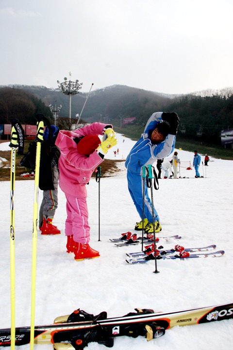 예년보다 이른 추운 날씨덕에 겨울스포츠의 꽃 스키가 인기다. 지난 20일 양지파인리조트가 임시개장을 했고 22일 지산리조트가 시즌 오픈을 한 가운데 전국의 스키어, 보더들이 모여들고 있다. 스키와 보드는 설원을 빠른 속도로 활강하는 스포츠인만큼 준비운동은 필수요건이다. 아이들과 스트레칭을 하는 모습이 설경과 함께 기지개를 편다. 사진은 양지파인리조트. <글·사진 김호경기자>