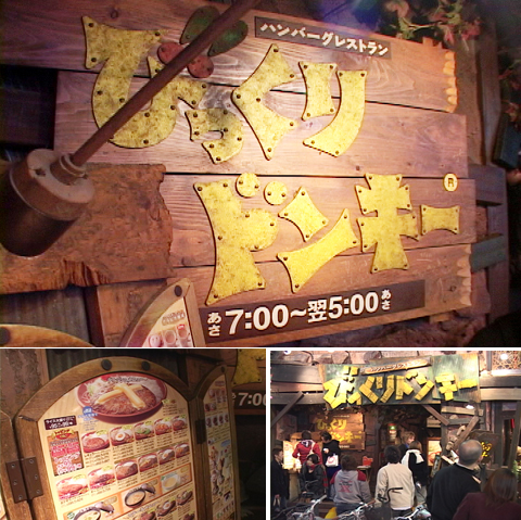 놀이동산을 연상케 하는 독특한 인테리어로 성업 중인 ‘빗끄리 동키’는 24시간 영업으로 시간에 관계없이 가서 함박 스테이크를 즐길 수 있는 일본의 인기 레스토랑중 하나이다.