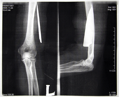 병원측은 환자의 팔꿈치 속에 약 11cm의 칼날이 박혀있음에도 불구, 22일여의 치료과정 동안 외상만을 치료해 온 것으로 드러났다.