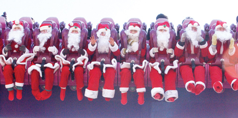 삼한사온이 실종된 걸까. 계속되는 강추위가 한 일주일이 바뀌어도 물러서질 않는다. 숨가쁘게 달려온 2005년도 한해가 얼마 남지 않았다. 숨을 고르고 산타들의 익살스런 모습을 보면서 우리의 주위를 둘러보자. 그리고 우리 모두가 산타가 되어보자. 사진은 에버랜드.<조형기 전문기자>
