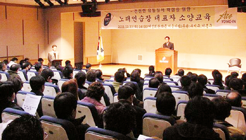 지난 20일 용인시 여성회관에서는 기흥구(구청장 양진철)와 수지구(구청장 갈경선)의 주최로 관내 노래연습장 대표 175명에 대한 특별소양교육이 실시됐다.