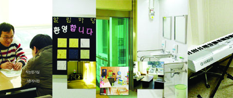 장애우들에게 최대한의 공간을 마련해 주기 위해 정작 복지관에서 근무하는 복지사들과 직원들의 사무실은 콩나무 시루같이 비좁다.