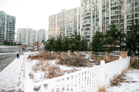 용인시 수지구 상현동 만현마을 I-Park 아파트 앞 자투리땅. 이곳은 현재 상가건축을 두고 건축주와 이를 저지하려는 주민들간의 분쟁이 한창이다.