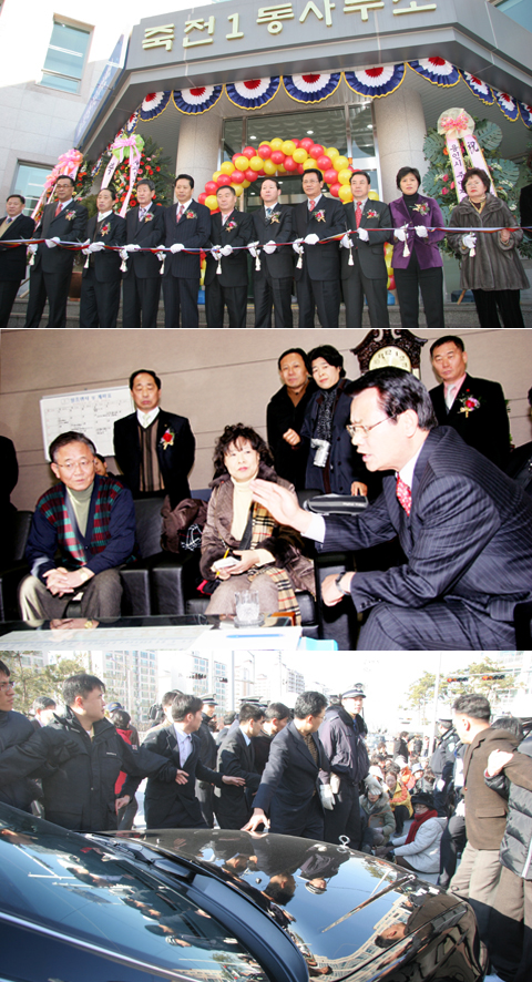 준공식은 오후 2시부터 개최하기로 계획돼 있었으나 동사무소 맞은편에 미리 집회신고를 낸 150여명의 주민들이 한시간전부터 길을 막고 시위를 벌이기 시작했다. 이어 이정문 용인시장의 관용차량이 들어서자 시민들이 차량을 에워싼 채 입장을 막아 이를 저지하는 경찰들과 30여분간 극렬한 몸싸움을 벌였다.