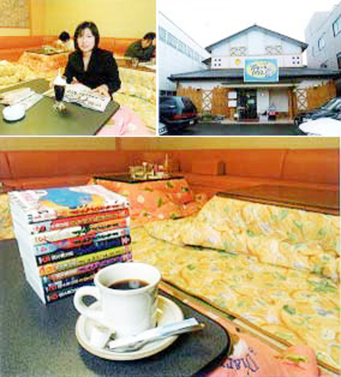 나고야시 나카가와구에는 집처럼 편안한 자세로 만화를 볼 수 있는 카페가 있다. 마치 작은 쉼터와도 같은 이곳은 ‘보오또 하우스’라는 만화카페이다. 이곳에는 2층에 일본전통 난방기구인 코타츠를 들여놓아 자고 싶은 사람은 그 자리에 누워 잘 수도 있는 등 마음대로 공간을 활용할 수 있다.