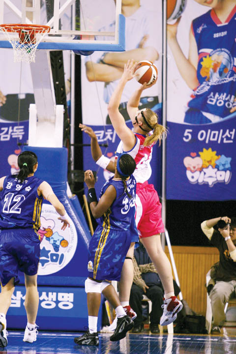 용인삼성생명비추미농구단이 지난 5일 용인실내체육관에서 열린 여자프로농구 겨울리그 신한은행과 경기에서 접전끝에 막판 핀스트라의 활약으로 75대 66으로 이긴대 이어 9일 서울 장충체육관에서 벌어진 경기에서도 광주 신세계를 꺽는 뒷심을 발휘하며 4강 플레오프에 한발 더 가까이 다가갔다.
