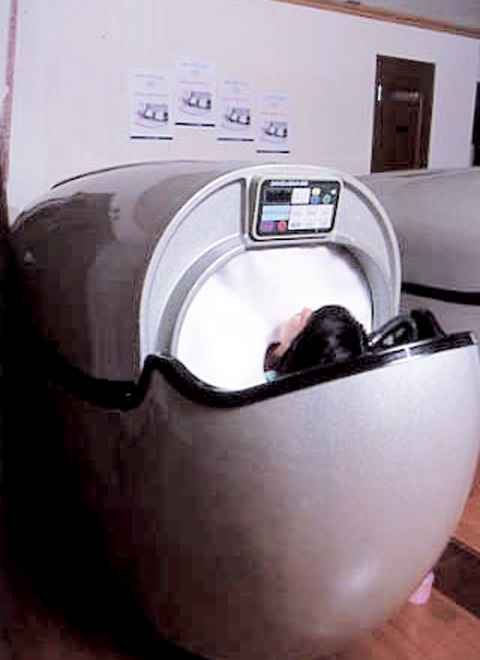 다만 기계 안에 누워만 있으면 자동으로 씻어준다. 코스는 ‘노멀(normal) 코스’와 ‘팩 코스’ 두 가지가 있다. 노멀 코스는 ‘세척-> 샤워-> 원적외선-> 샤워-> 로션-> 원적외선’의 과정으로 진행되며 샤워기에서 나온 뒤에는 체중도 0.7kg가량 줄어드는 획기적인 기계이다. 미용이나 건강에도 좋은 전자동 샤워기의 이름은 SANTELUBAIN이며 가격은 1,800엔이라고 한다. 전자동 샤워기가 있는 긴자의 살롱 [썬 티어 밴 살롱 긴자]에서 노멀 코스는 1,500엔, 팩 코스는 4,000엔이다.