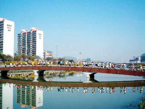 아름다운 강변에 오리 떼가 유유히 헤엄 치고 둔치길에는 개나리와 벚꽃이 활짝 피는 4월의 탄천. 이곳에서 열리는 ‘분당 마라톤 대회’는 분당의 아름다운 봄을 만끽하는 대회로 자리잡고 있다.
