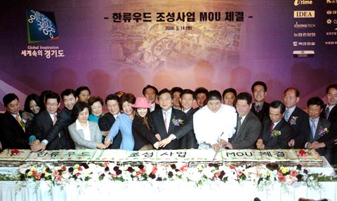 차세대 동아시아 문화컨텐츠산업의 선두주자로 발전시키기 위한 ‘한류-WOOD 조성사업 MOU체결식’ 행사가 컨소시엄 참여기업 CEO, 문화컨텐츠 관련기업 및 한류연예인, 방송관계자, 한류우드 자문위원, 사업자 선정 심사위원, 국회의원, 도의원 등 500여명이 참석한 가운데 지난 14일 서울 63빌딩 국제회의실에서 개최됐다.