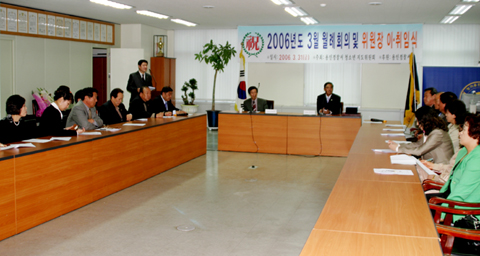 월례회의에서는 정관 개정의 건에 토의를 가졌으며 회원간 친목도모 및 화합방안을 모색하는 회의를 가졌다.