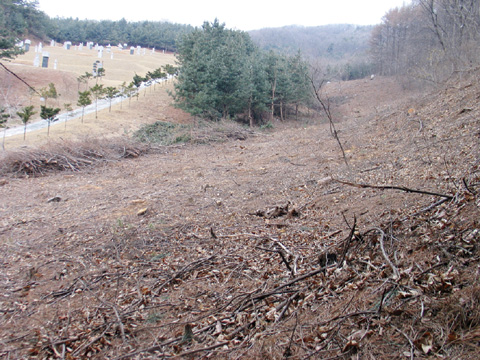 종중묘 관리사무소에 따르면 지난해 11월부터12월까지 용인시 처인구 양지면 제일리 산 37-1호 일대에 심어진 10~15년생 낙엽송과 잣나무 등 300여 그루를 인부들을 불러 베어낸 뒤 지난달 20일 잣나무와 활엽수 등을 심어 수목을 갱신했다.