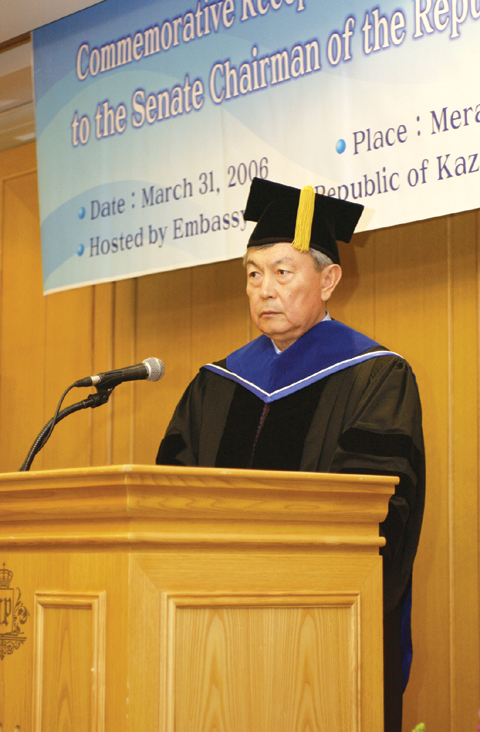 강남대학교는 “누르타이 의장은 현재 카자흐스탄공화국 국회상원의장으로 봉직하면서 유럽안보협력기구를 중심으로 다양한 국회 대표 활동을 통해 카자흐스탄공화국과 대한민국과의 국제 협熾?큰 공을 세웠다”며 “이와 함께 강남대학교와의 국제교류에도 지대하게 공헌하였기에 강남대학교 대학원의 명예행정학박사학위를 수여하게 됐다”고 밝혔다.