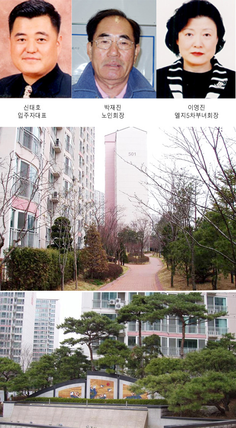 입주자 대표 신태호 회장은 용인시 전체 아파트단지 총회장으로 봉사를 하고 있고 부녀회 최옥태 회장은 신봉동 총회장일을 맡아 봉사에 여념이 없다.