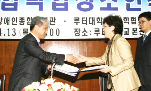지난 13일 용인시서북부장애인복지관(관장 임형규)은 루터대학교 산학협력단(단장 이선영)과 루터대 본관 소강당에서 산학협력 조인식을 가졌다.