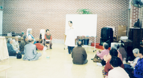매주 한번씩 용인의 양로원, 교회, 마을회관 등을 찾아 고령환자들의 노인성 질환인 고혈압, 당뇨, 진통, 요통, 슬통, 감기, 관절염, 구내염 등을 무료로 치료해 주고 있는 고려수지침 일심수지봉사단(단장 김전환).
