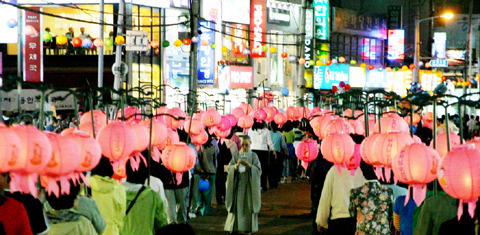 이날 법회와 함께 열린 시가행진은 3군 사령부 군악대를 선두로 각 사찰에서 마련한 다양한 모형들과 연등을 손에든 불자 및 시민들과 참석해 어둑해지는 저녁하늘과 아름다운 조화를 이뤘다.