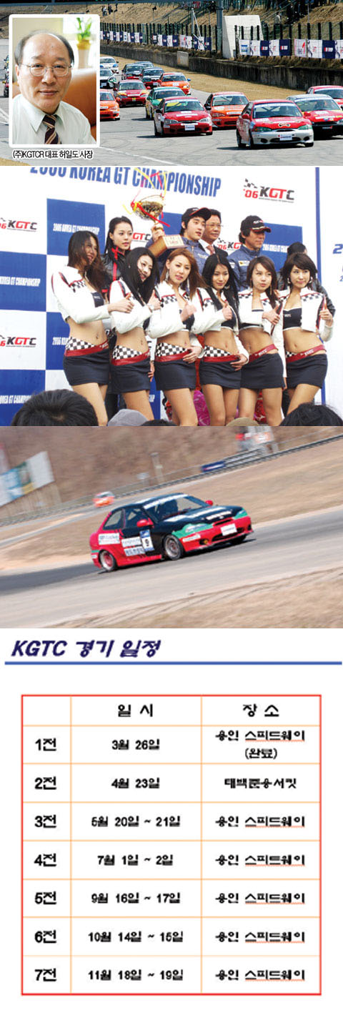 지난 3월 26일 KGTCR의 첫 시험무대가 용인 스피드웨이에서 화려하게 펼쳐졌다. 자동차들이 뿜어내는 굉음과 관중들의 열기, 늘씬한 레이싱걸들의 유혹적인 자태가 관객들의 눈을 사로잡은 2006코리아GT챔피언십(이하 KGTC) 개막전은 그야말로 2만여명의 관중들이 함께 즐긴 축제였다.