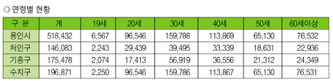 71만 5631명 용인시 인구 가운데 72.4%에 해당하는 51만 8432명이 투표에 참여하는 이번 선거에는 30~40대의 선거인수가 52.7%에 달해 이들의 투표참여율이 선거 결과를 결정짓는데 큰 역할을 할 것으로 전망된다.