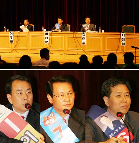 5·31지방선거 용인시장 후보들의 자질과 정책을 검증해 유권자들의 올바른 선택을 유도하기 위해 개최된 이번 토론회는 기호2번 한나라당 서정석 후보의 불참으로 토론회의 본질을 잃은 아쉬움 속에 진행됐다.