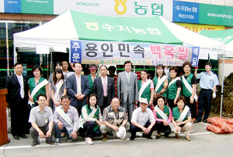 수지농협 죽전지점(지점장 안철훈)은 지난 8일 죽전지점 주차장에서 ‘용인 백옥쌀 특별 판매행사’를 실시했다.