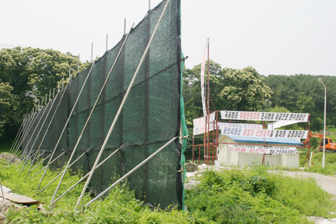 성복동 택지개발지구 한쪽에 전쟁을 방불케하는 주택이 한 채 있다. 주택건설 공사업체와의 분쟁으로 주민이 플래카드를 집밖에 내걸자 공사업체에서는 방진막이라는 커다란 벽을 설치했다. 주민은 이에 질세라 집밖으로 기둥을 세우고 더 높게 플래카드를 내걸었다. 앞으로는 방진막, 뒤로는 공사도로에 포위 당한채 주민들은 계약당시 건설업체가 자신들을 기만했다고 주장하고 보상을 요구하며 쓸쓸한 전쟁을 하고있다.