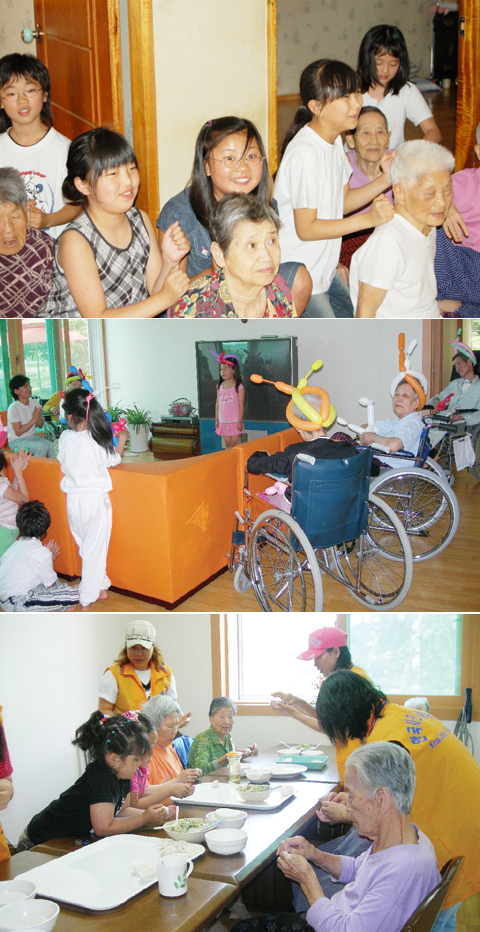 뿐만 아니라 지금까지 7개의 복지시설단체를 대상으로 월 1회 시설봉사활동을 전개하는가 하면 1학급 1 독거노인들과 결연을 맺어 청소하기, 말벗하기, 선물 드리기, 한 학급 당 소년소녀가장과 자매결연을 맺어 도서바자회 등을 통한 수익금으로 돕기 운동 등 이들의 활동은 열거하기에도 벅차다.
