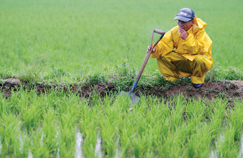 장맛비의 시작을 알리는 비가 내린 지난 21일 처인구 백암면 근창리 논에 물꼬를 보러 나온 노인이 비를 맞으며 농사 걱정이 한창이다. 가뭄끝은 있어도 장마 끝은 없다는 말이 있다고 했던가. 하지만 올해는 한 술 더 떠 장마보다도 더 무서운 한미 FTA 문제로 농민들의 맘은 무거워만 보인다.