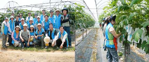경기도 공무원 40명으로 구성된 경기사랑봉사회는 지난달 24일, 경기도 공무원 자원봉사자 23여명과 함께 포도 봉지씌우기가 한창인 화성시 신남동 93번지의 이계숙씨 농가를 찾아 바쁜 일손을 도왔다.