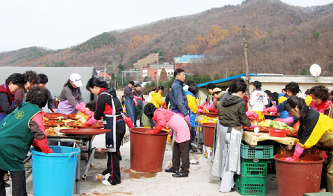 지난달 26일 용인시 이동면 묵리에 위치한 노인복지시설 ‘영보기도의 집’에서 용인시 공무원 가족 60여명이 ‘사랑의 김장 담그기’ 행사를 실시했다.
