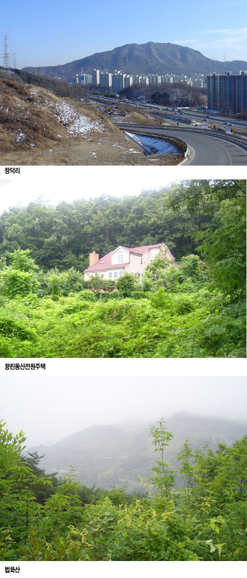 비록 필연의 만남이지만 무엇이든지 마음먹기에 달렸다는 교훈으로 선입관을 버려야 한다고 생각한다. 건강하게 산다는 것은 정말 행복이다. 능선에 오르니 산속에 생각지 못한 건물이 나타난다. 전원주택이 능선을 점령했다. 주택을 끼고 앞으로 나서면 청덕마을아파트가 우뚝 솟아 있다. 초록색 철조망을 따라 가려면 민가로 내려서야 한다. 밭 옆으로 해서 산 능선으로 오르면 아파트 전면능선에 측량 삼각점이 있다. 아파트를 끼고 돌아 내려선다. 소나무가 빼곡한 숲길엔 가족묘지여서 ‘조 하라’는 흰 팻말 자주 보인다.