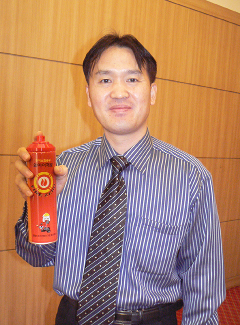(주)세이지(www.sages.co.kr)가 개발한 이 제품은 모기약처럼 원터치 에어졸 방식으로 어린이나 노약자가 사용하기 편해 집안에 비치해 놓으면 화재 위험에서 쉽게 벗어날 수 있다.
