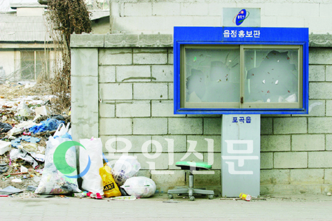 처인구 전대리에 설치돼 있는 포곡읍정 홍보판. 홍보판이란 이름이 민망할 정도로 훼손되어 있다. 홍보판 바로 옆은 주민들이 쓰레기를 가져다 버리는 곳이 되어 버렸고 아무런 홍보내용도 없는 홍보판은 깨져 있다. 훼손한 사람은 물론 저런 홍보판을 방치해둔 포곡읍에도 문제가 있다. 에버랜드 덕택에 외지인의 통행이 많은 도로인 만큼 빠른 보수가 이루어지길 바란다.