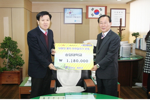 또한 송담대학과 1교1촌 자매 부락 결연을 맺은 이동면 백봉1리 평촌마을을 찾아 최성식 부학장이 독거노인 및 불우 이웃 돕기 성금을 전달했다.