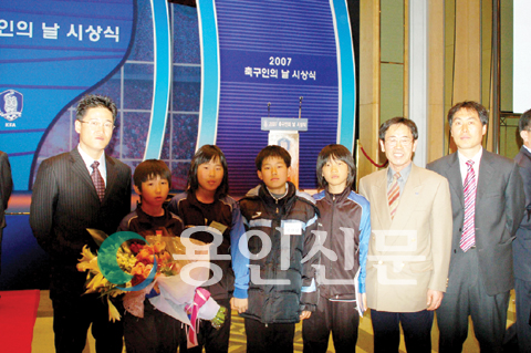 용인초교 축구부는 지난달 30일 서울 그랜드 호텔 컨벤션홀에서 열린 ‘2007 축구인의 날 시상식’에서 2006년 남자 초등부 부분 상을 휩쓸었다.