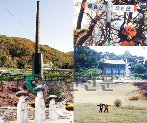 고개에 올라서니 366.4m의 삼각점이 있는 도덕산이다. 길을 내려서며 좌측으로 올라 갈림길쯤에 멋진 평원을 만난다. 신정목장이다. 저 멀리 산 아래까지 뻗어 있는 초지는 멋진 알프스의 초지 싸운드오브뮤직에서 느끼는 그런 배경이다. 조금 아래 홀로선 나무아래에서 기지개를 피며 소리 질러본다. 모두 아름다운 노래되어 사진 속으로 빨려들어 왔다. 그리고는 영화의 주인공처럼 뒤로 넘어지며 풀 속에 잠겨 버렸다.