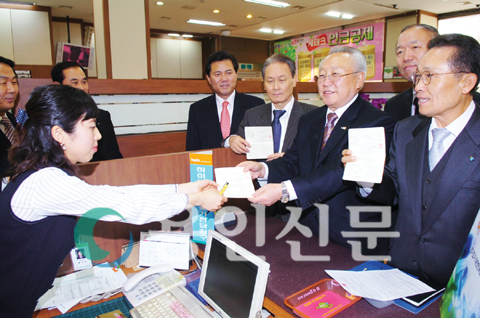 지난 14일 이병성 용인상의 회장은 우봉제 경기도상공회의소연합회장, 김창진 안양상공회의소 회장과 함께 농협중앙회 인계동지점에서 각각 30주씩 하이닉스 주식갖기 운동에 동참했다.