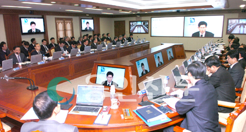 경기도는 도본청과 제2청사, 31개 시·군 및 7개 사업소간의 회의가 가능한 첨단 고화질(Full HD) 영상회의 시스템을 구축하고 지난 12일 본청과 제2청사간 확대간부회의를 진행했다.