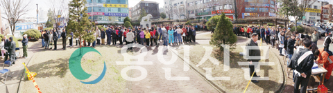 이른 아침부터 묘목을 받기 위해 줄을 서 있는 사람들. 순서를 기다리는 사람들이나 묘목을 받고 뿌리가 다칠까 조심스레 안고 있는 사람들의 표정에 봄 향기의 싱그러운 미소가 가득하다. 사진은 지난달 30일 처인구청 앞 라이온스공원에서 열린 무료 나무 나눠주기 행사장.