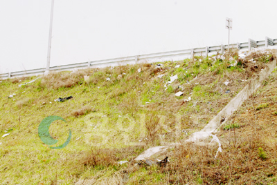 지난 17일 처인구 이동면 신45번국도변. 차에서 밖으로 던진 쓰레기들이 바람에 날려 도로변을 덮어버렸다. 쓰레기들은 근처 이동 저수지나 논으로 날려 지역주민들의 골칫거리가 되고 있다. 가끔 청소가 되긴 하지만 늘어나는 양이 만만치 않아 청소는 하나마나. 요즘 같이 건조한 날, 도로변으로 던지는 담배꽁초로 화재가 발생하기도 한다.
