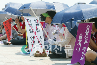 성복동녹지보존위원회(위원장 임병준)은 지난 19일 시청 앞 광장에서 성복취락지구 개발과 관련 “개발 업체가 공사중지 명령에도 불구 공사를 감행하고 있다”며 시에 대책을 촉구하는 집회를 가졌다.