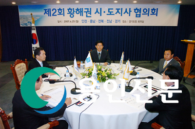 제2회 황해권 시·도지사 협의회경기도는 지난 달 25일 경기도청 회의실에서 경기, 인천, 충남, 전북, 전남 등 서해안권 5개 시·도지사가 참석한 가운데 제2회 황해권 시·도지사 협의회를 개최하고 서해안권 개발에 적극 협력키로 했다.